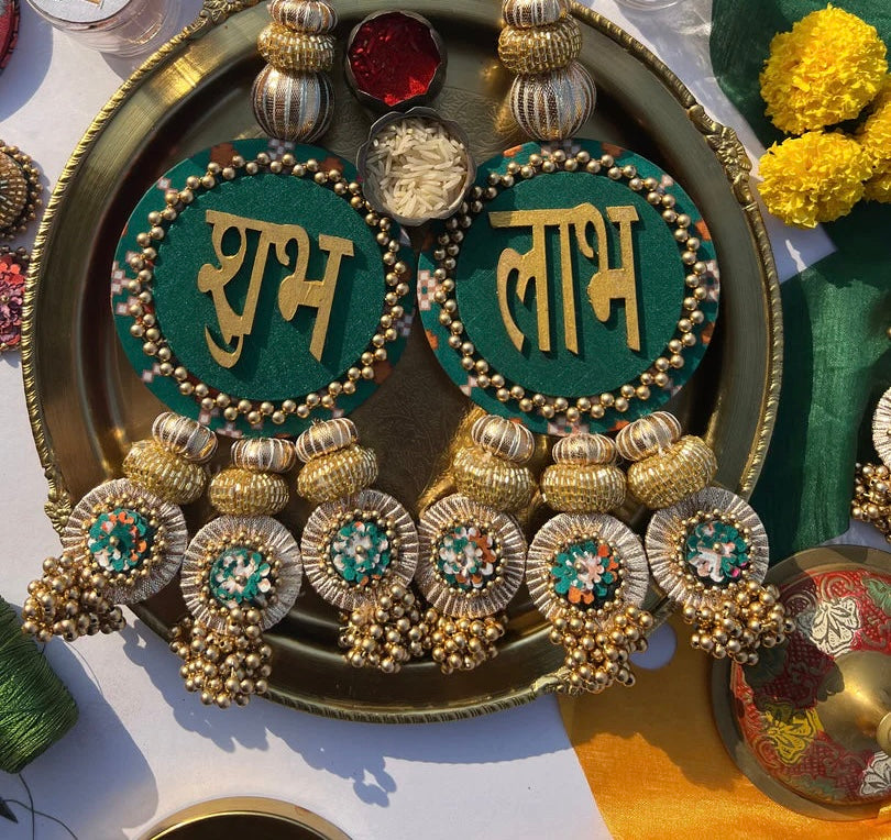 The hangings include religious motifs, hand-painted using acrylic colours. The motif of Shubh means auspicious and Labh means gains respectively. So it means Auspicious Gains. In Hinduism it is believed that the gains must be auspicious in order for it to bestow happiness to a person.
